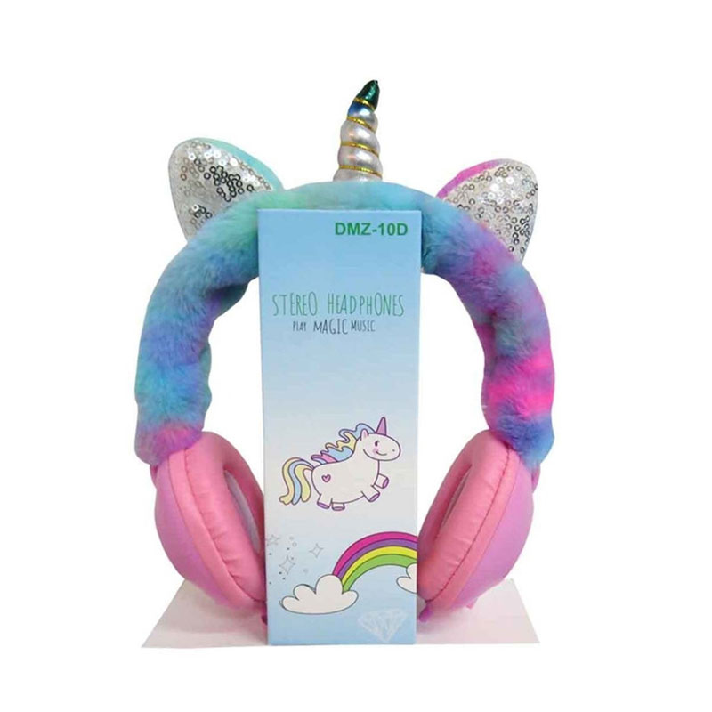 -Audifono Tipo Diadema Alambrico DMZ-10D Afelpado Arcoiris Unicornio Niño